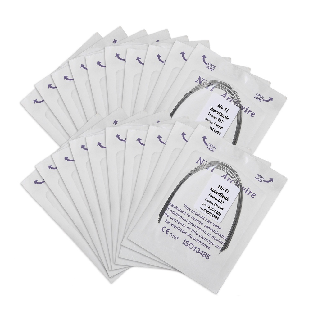 Description: 10pcs/pack Niti arch wire Super Elastic Ovoid Form Specifications: Fully active at room temperature. Exhibits excellent spring back. Gentle to patients, but powerful enough to align even the most challenging cases. Moderate forces are an excellent choice for all treatment phases Permanent Centerline Mark: The distinct upper and lower gable mark the arch wire between the central incisors, prevents asymmetry problems. It also eliminates the need for time-consuming cinch-back bends.